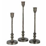 Informations Techniques : Dimensions : Taille 1 : D. 10,75 x H. 40,5 cm Taille 2 : D. 10,75 x H. 35,5 cm Taille 3 : D. 10,75 x H. 30,5 cm Matière : Aluminium Spécificités : Tendance & Moderne Lot de 3 Chandeliers Design Forme Ronde Style Vintage & Rétro Poids : 1,4 kg Couleur : Noir