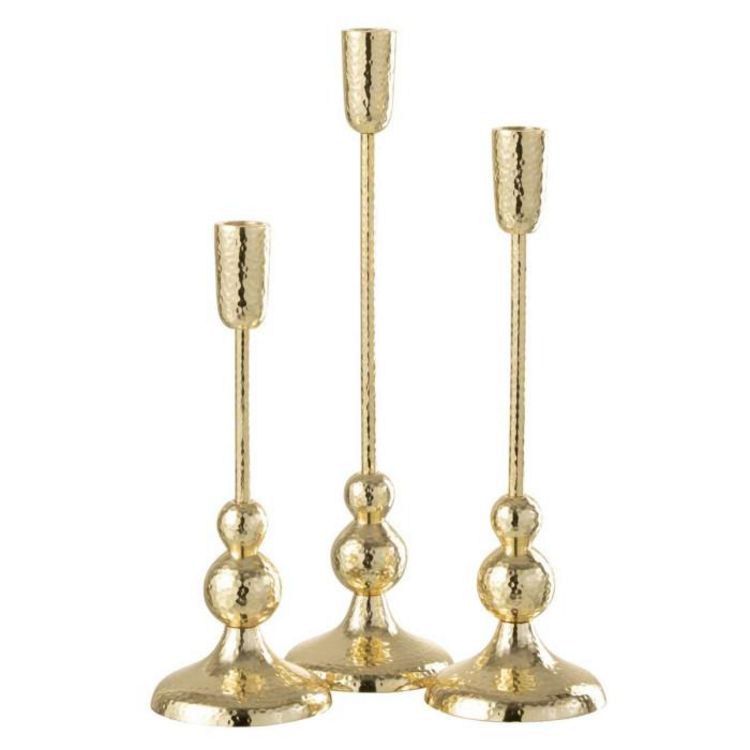 Informations Techniques : Dimensions : Taille 1 : D. 10 x H. 28 cm Taille 2 : D. 10 x H. 33 cm Taille 3 : D. 10 x H. 38 cm Matière : 100% Aluminium Spécificités : Chic & Déco Lot de 3 chandeliers Design martelé Forme ronde Bougies non incluses Vendu à l'unité Poids : 1,34 kg Couleur :