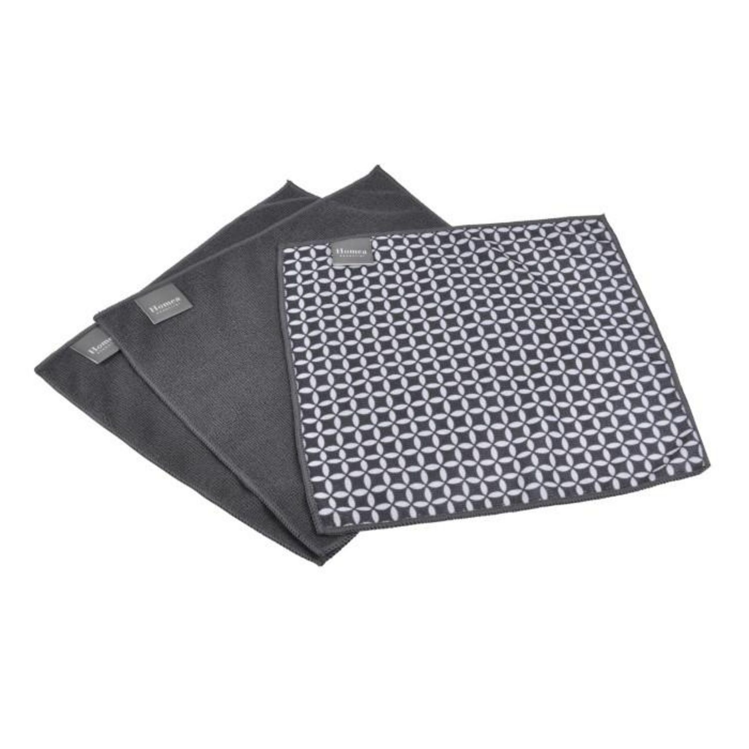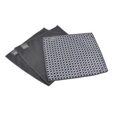 Informations Techniques : Dimensions : L. 30 x l. 30 cm Matière : Polyester & Microfibre Spécificités : Pratique & Utile Lot de 3 Chiffons Forme Carrée A Motifs Facile d'entretien & d'utilisation Couleur : Gris & Blanc