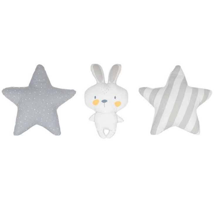 Lot de 3 Coussins Enfant Étoiles & Lapin 28cm Blanc