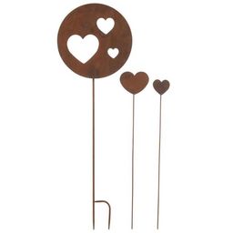 Lot de 3 Décorations de Jardin Cœur 100cm Marron Rouille