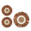 Informations Techniques : Dimensions : Taille 1 : D. 45 cm Taille 2 : D. 40 cm Matières : Rotin & Raphia Spécificités : Tendance & Moderne Lot de 3 Décorations Murales Forme Ronde A Suspendre Poids : 0,49 kg Couleur : Marron
