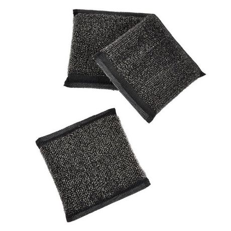 Informations Techniques : Dimensions : L. 10 x l. 8,5 cm Matière : Fibres de Bambou Spécificités : Pratique & Utile Lot de 3 Éponges Grattantes Facile d'entretien & d'utilisation Couleur : Gris