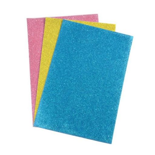 Lot de 3 Feuilles Adhésives Mousse Paillettes 30cm Multicolore