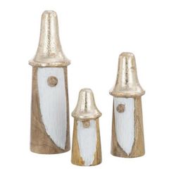 Lot de 3 Gnomes Champignons 25cm Naturel & Or