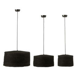 Informations Techniques : Dimensions : Taille 1 : D. 30 x H. 18 cm Taille 2 : D. 40 x H. 20 cm Taille 3 : D. 50 x H. 26 cm Câble : L. 150 cm Matières : 70% Jonc & 30% Métal Spécificités : Naturel & Utile Lot de 3 suspensions Ampoules non incluses Douille : E27 Puissance : 40W Poids : 4