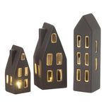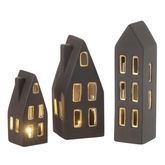 Lot de 3 Maisons à LED Porcelaine 20cm Noir