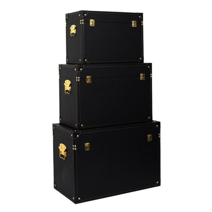 Lot de 3 Malles Déco Orya 56cm Noir & Or