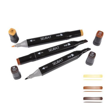 Informations Techniques : Dimensions : L. 1,5 x H. 15,5 cm Matière : Plastique Spécificités : Utile & Pratique Lot de 3 Marqueurs Double Pointe (1 large & 1 fine) Couleur : Chocolat