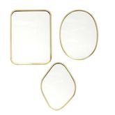 Informations Techniques : Dimensions : L. 25 x l. 1 x H. 34 cm Matières : Métal & Bois Spécificités : Pratique & Utile Lot de 3 miroirs Formes variées Poids : 0,56 kg Couleur : Doré