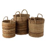 Informations Techniques : Dimensions : Taille 1 : L. 40 x l. 46 x H. 58 cm Taille 2 : L. 37 x l. 40 x H. 51 cm Taille 3 : L. 30,5 x l. 37 x H. 46 cm Matière : Raphia Spécificités : Déco & Utile Lot de 3 paniers de rangement Forme ronde Poids : 3,73 kg Couleur : Naturel