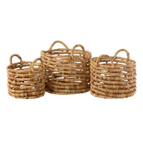 Informations Techniques : Dimensions : Taille 1 : D. 36 x H. 38 cm Taille 2 : D. 30 x H. 34 cm Taille 3 : D. 25 x H. 29 cm Matières : Roseau, Rotin, Herbes & Bambou Spécificités : Pratique & Tendance Lot de 3 Paniers Déco Forme Ronde Avec Anse Poids : 1,891 kg Couleur : Naturel