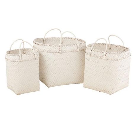 Lot de 3 Paniers Déco Rotin 50cm Blanc