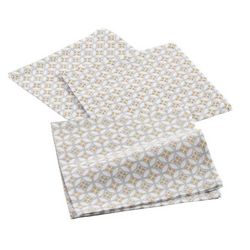 Informations Techniques : Dimensions : L. 40 x l. 40 cm Produit Packagé : L. 21 x l. 2 x H. 27 cm Matière : 100% Coton Spécificités : Pratique & Utile Lot de 3 Serviettes de Table Forme Carrée A Motifs Finition Ourlet Poids : 0,122 kg Couleur : Gris