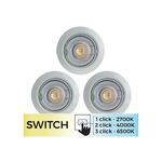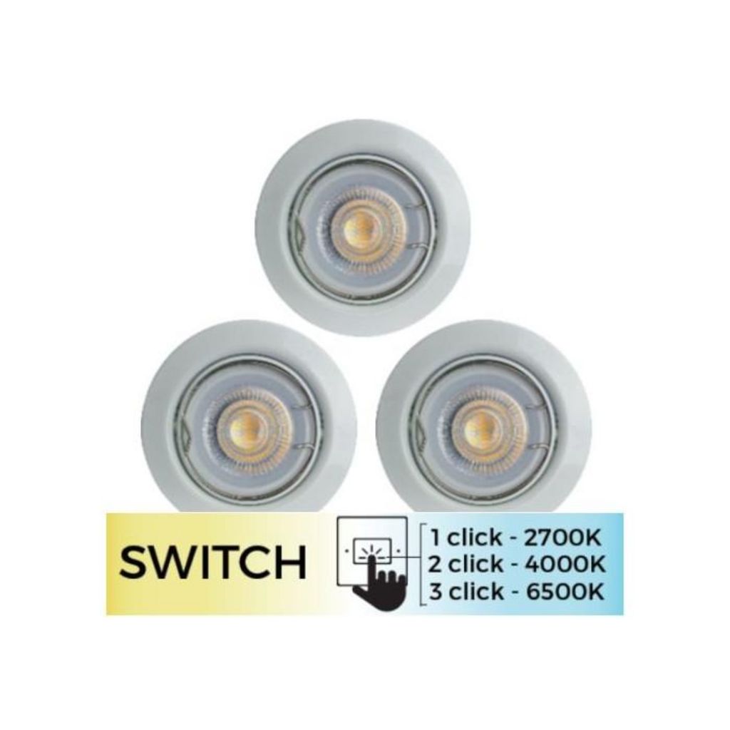 Informations Techniques : Dimensions : D. 9,3 x H. 3,3 cm Matière : Métal Spécificités Lot de 3 Spots Encastrés Changement de température de couleur et d'intensité lumineuse Eclairage confortable & adapté à chaque moment de la journée Forme Ronde Technologie : LED Type de Culot : GU10 Puissance : 5