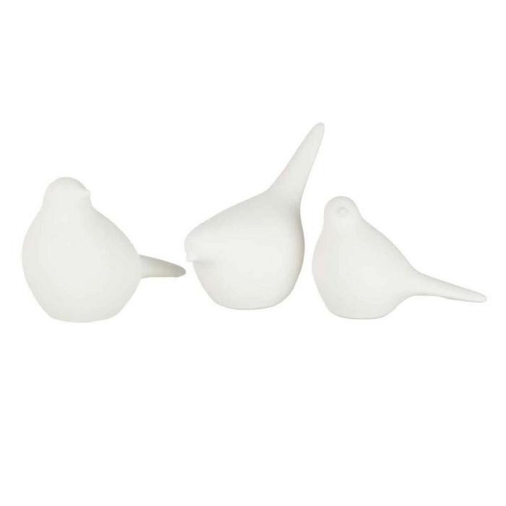Lot de 3 Statuettes Déco Oiseaux 19cm Blanc