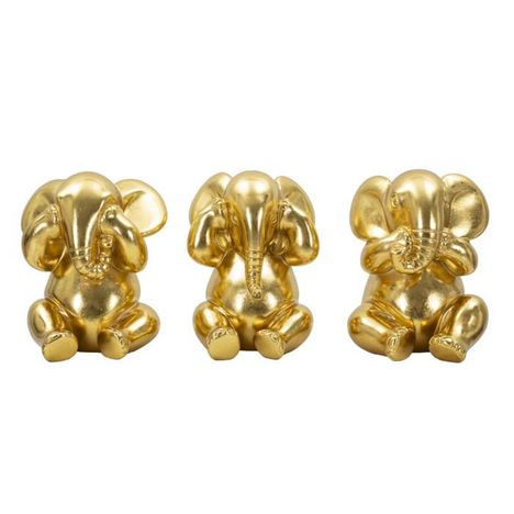Lot de 3 Statuettes en Résine Éléphants 20cm Or