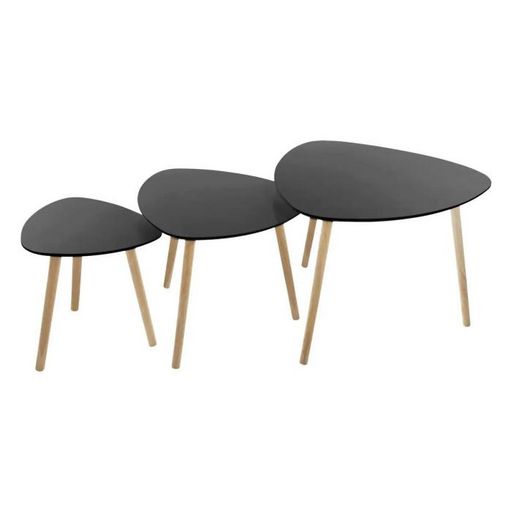 Informations Techniques : Dimensions : Taille 1 : L. 34 x l. 34 x H. 35 cm Taille 2 : L. 46,5 x l. 46,5 x H. 40 cm Taille 3 : L. 60 x l. 60 x H. 45 cm Matières : Plateau : MDF Piètement : Bois (Hévéa) Spécificités : Design & Tendance Lot de 3 tables à café Format gigogne Plateau en forme de goutte