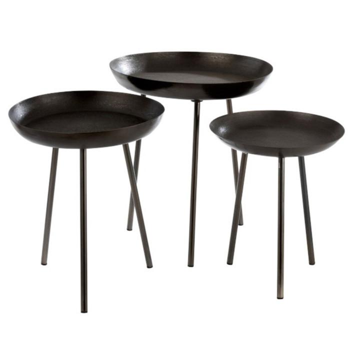 Lot de 3 Tables d'Appoint Rondes Cario 50cm Gris