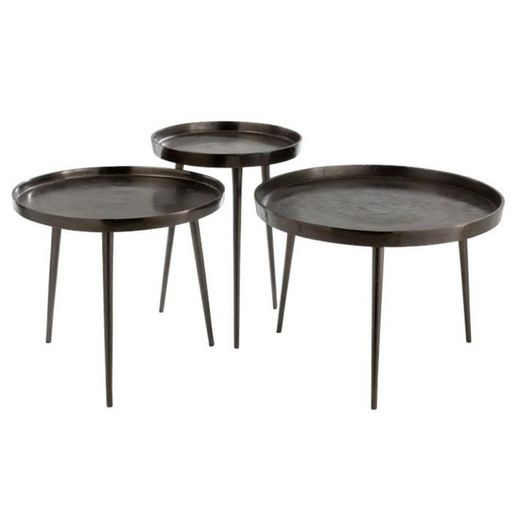 Lot de 3 Tables d'Appoint Rondes Cario 61cm Gris