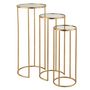 Informations Techniques : Dimensions : Taille 1 : D. 25 x H. 60 cm Taille 2 : D. 30 x H. 70 cm Taille 3 : D. 35 x H. 80 cm Matières : Métal, Fer & Verre Spécificités : Tendance & Moderne Lot de 3 Tables Gigognes Forme Ronde Avec Miroir Facile d'entretien & d'utilisation Poids : 5,26 kg Couleur : Or