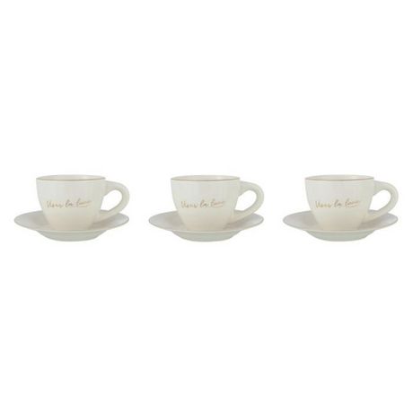 Informations Techniques : Dimensions : D. 14,7 x H. 6,8 cm Matière : 100% Porcelaine Spécificités : Utile & Élégant Lot de 3 tasses Avec 3 sous-tasses Inscription viser la lune Forme ronde Contenance : 21 cl Poids : 0,36 kg Couleur : Blanc & Or