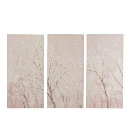 Informations Techniques : Dimensions : L. 50 x l. 2,8 x H. 100 cm Matières : Bois & Canevas Spécificités : Tendance & Moderne Lot de 3 Toiles Forme Rectangulaire A Suspendre Motif Floral Poids : 1,14 kg Couleur : Rose & Blanc