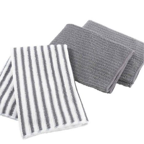 Informations Techniques : Dimensions : L. 40 x l. 40 cm Matière : 100% Polyester Spécificités : Pratique & Utile Lot de 3 torchons de cuisine Finition avec ourlet Forme carrée Poids : 0,1 kg Couleur : Gris