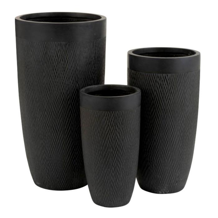 Lot de 3 Vases Ronds Design Argile 72cm Noir
