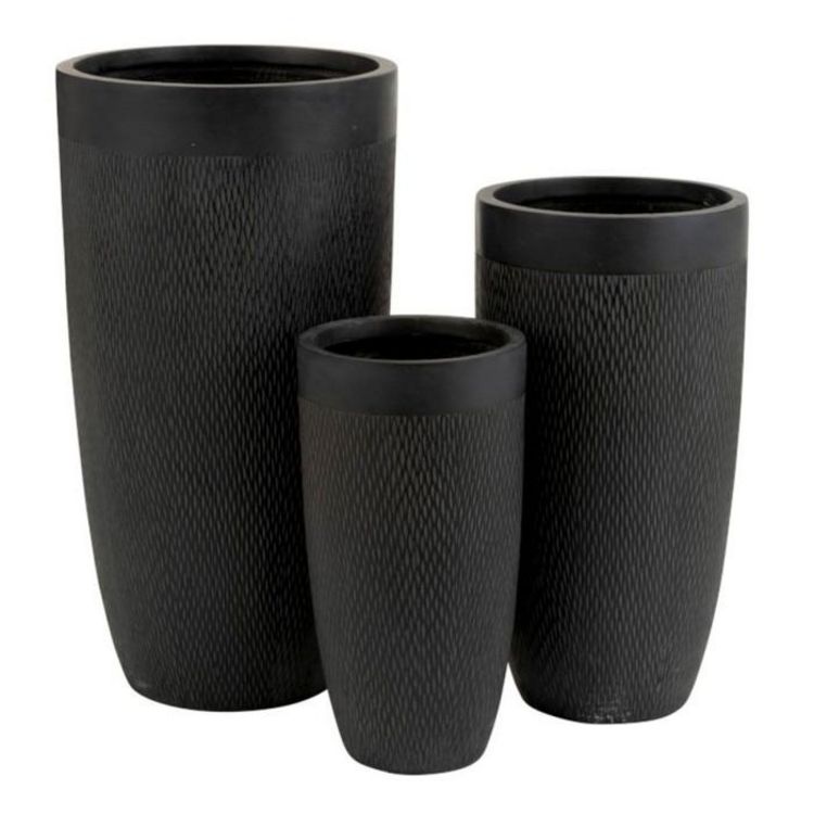 Informations Techniques : Dimensions : D. 38 x H. 72,5 cm Matière : Poterie Spécificités : Tendance & Moderne Lot de 3 Vases design Forme Ronde Facile d'entretien & d'utilisation Poids : 18,52 kg Couleur : Noir