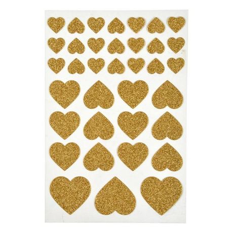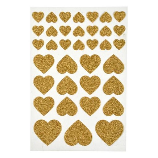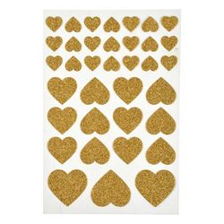 Lot de 36 Stickers Cœur Glitter Or