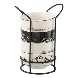Informations Techniques : Dimensions : L. 11,2 x l. 11,2 x H. 6,2 cm Matières : Céramique & Métal Spécificités : Moderne & Utile Lot de 4 bols avec socle Motifs skis, bâtons de ski et montagnes Inscriptions Après-ski Compatibles : Lave-vaisselle, four et micro-ondes Poids : 1,22 kg Couleur : Noir
