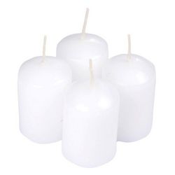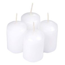 Informations Techniques : Dimensions : D. 4 x H. 6 cm Matière : Cire Spécificités : Parfum Jasmin Objet de décoration Vendu en lot de 4 Poids : 0,26 kg Couleur : Blanc