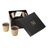 Informations Techniques : Dimensions : L. 6,5 x l. 6,5 x H. 7,5 cm Matières : 50% Cire & 50% Verre Spécificités : Élégante & Déco Lot de 4 bougies parfumées Avec boîte noire Design imprimé doré Senteur : Oud & Amber Type de fragrance : Boisée Durée de combustion : 20 heures Poids : 0,84 kg Couleur