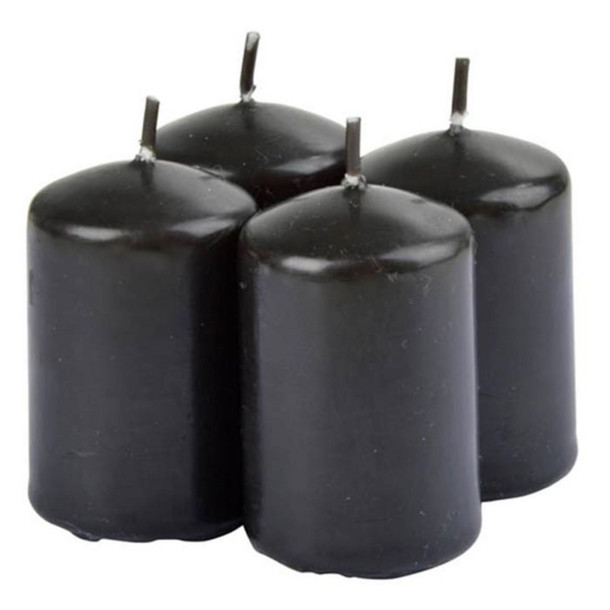 Informations Techniques : Dimensions : D. 4 x H. 6 cm Matière : Paraffine Spécificités : Tendance & Pratique Lot de 4 bougies parfumées Design pilier Senteur : Bois de santal Type de fragrance : Boisée Forme ronde Poids : 0,22 kg Couleur : Noir