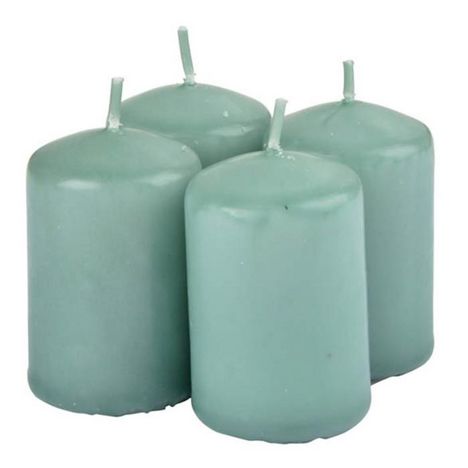 Informations Techniques : Dimensions : D. 4 x H. 6 cm Matière : Paraffine Spécificités : Tendance & Pratique Lot de 4 bougies parfumées Design pilier Senteur : Thé vert Type de fragrance : Végétale Forme ronde Poids : 0,22 kg Couleur : Vert