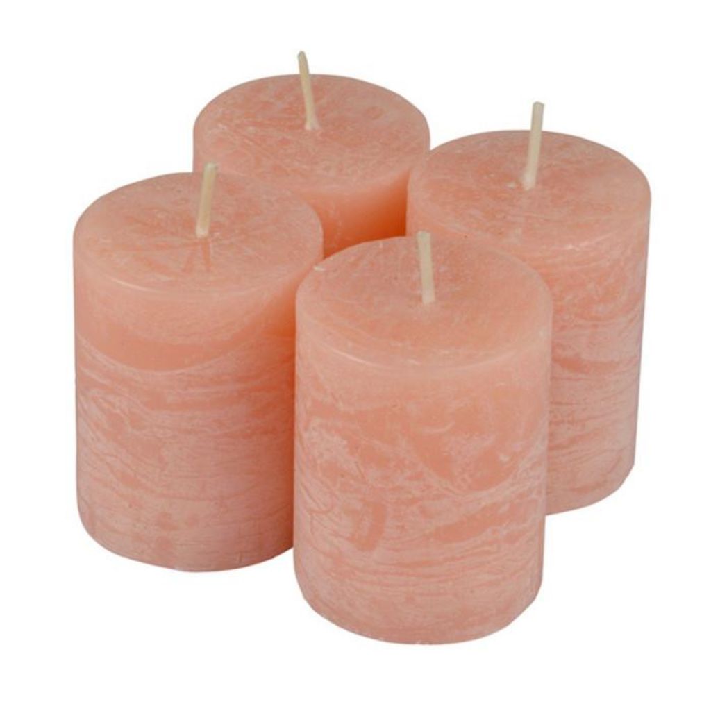 Lot de 4 Bougies Pilier Rustique 5cm Rose Poudré