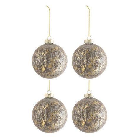 Lot de 4 Boules de Noël Antique 10cm Gris & Or