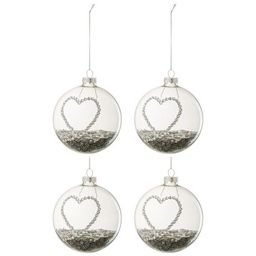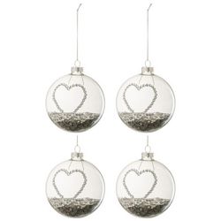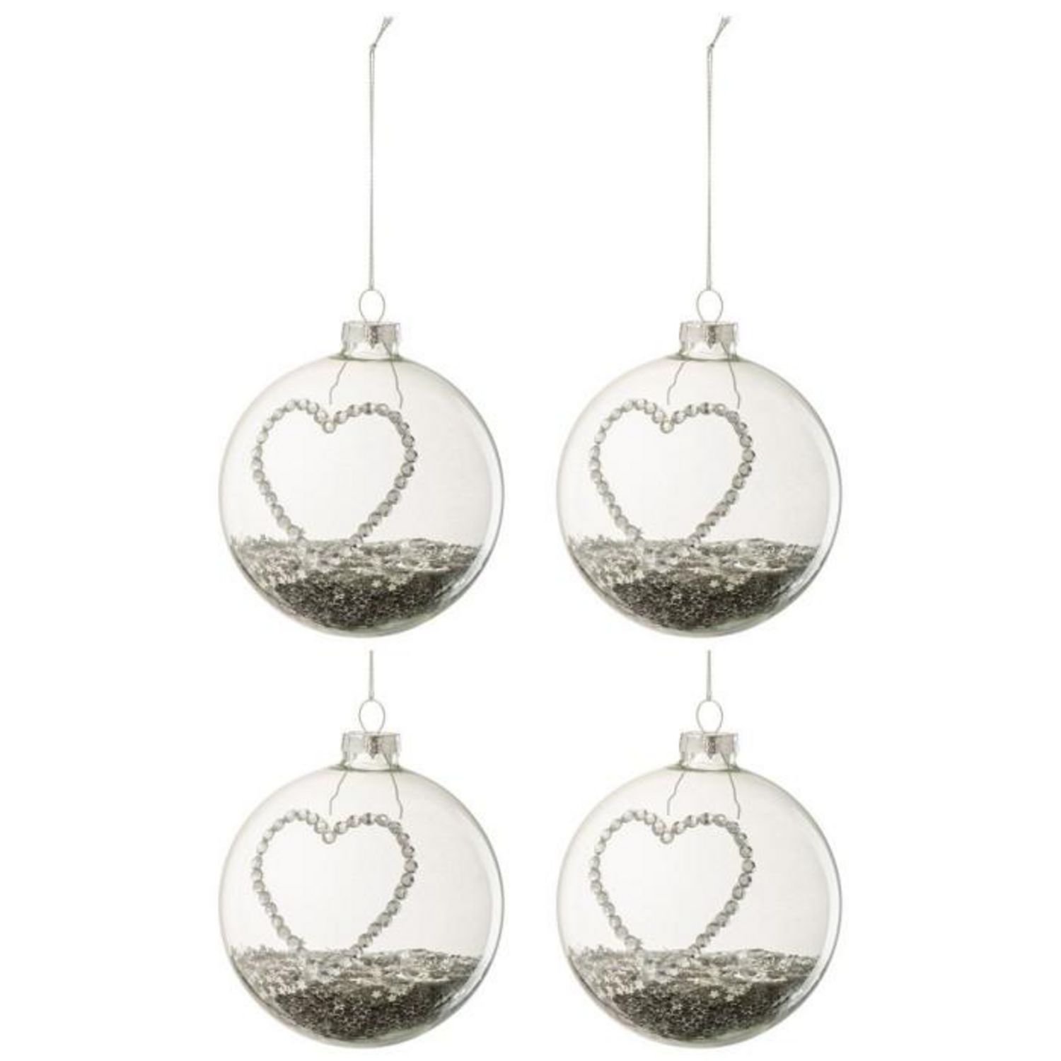 Lot de 4 Boules de Noël Cœur Strass 10cm Argent