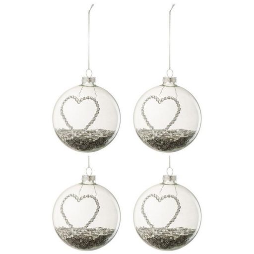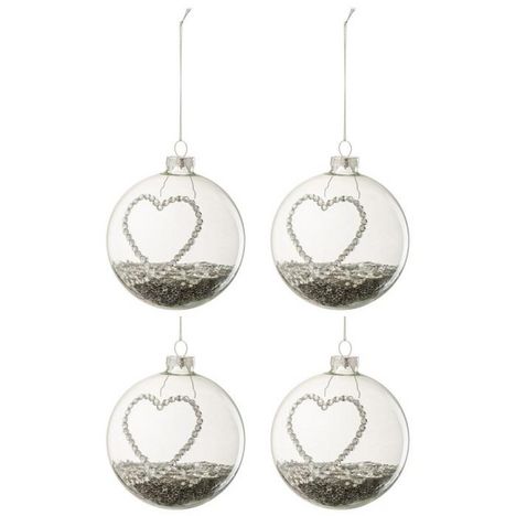 Informations Techniques : Dimensions : L. 10 x l. 10 x H. 10 cm Matière : Verre Spécificités : Design & Original Lot de 4 Boules de Noël Fome Ronde Design Coeur Avec Strass & Étoiles Poids : 0,095 kg Couleur : Argent