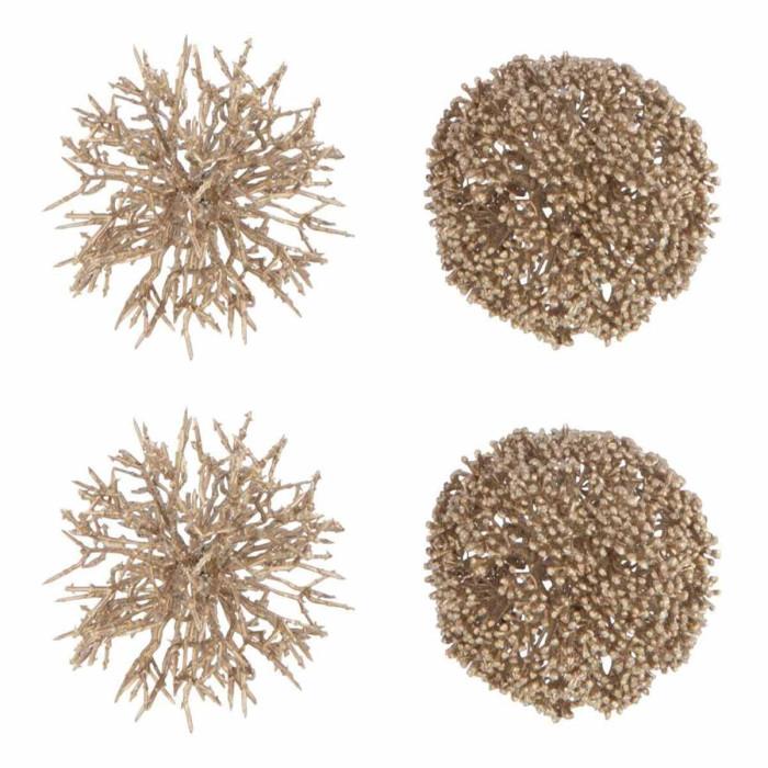 Lot de 4 Boules de Noël Corail 10cm Champagne