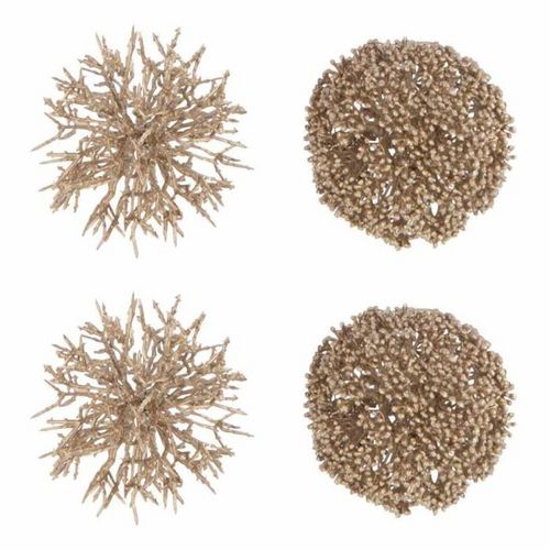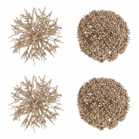 Informations Techniques : Dimensions : D. 10 x H. 10 cm Matière : 100% Plastique Spécificités : Déco & Original Lot de 4 boules de Noël À suspendre Design corail Forme ronde Poids : 0,06 kg Couleur : Champagne