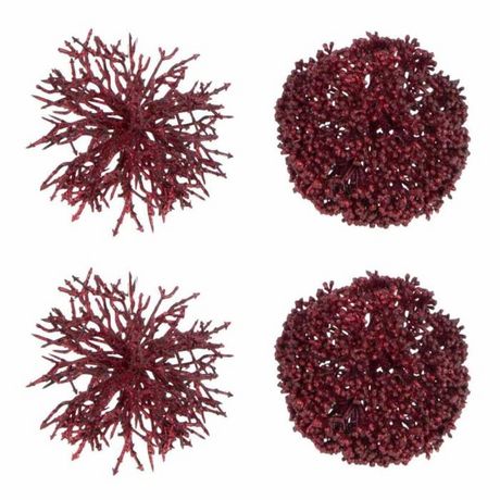 Lot de 4 Boules de Noël Corail 10cm Rouge