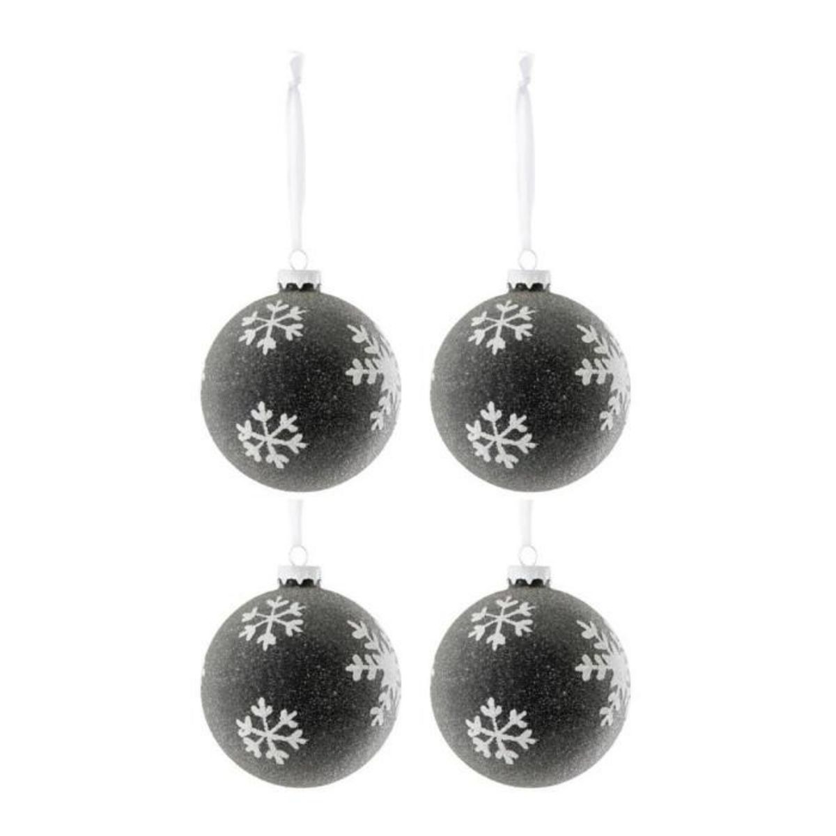 Lot de 4 Boules de Noël Flocon 10cm Gris Foncé