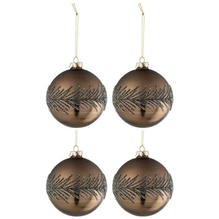 Lot de 4 Boules de Noël Givre Mat 10cm Marron