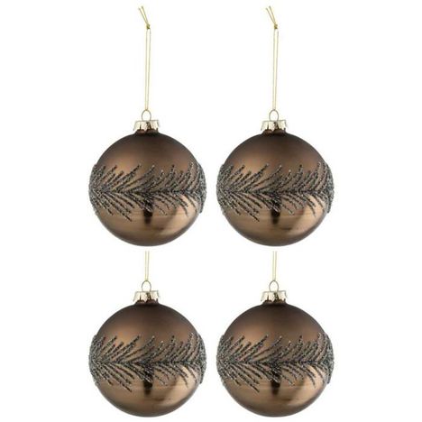 Informations Techniques : Dimensions : D. 10 x H. 10 cm Matière : Verre Spécificités : Tendance & Moderne Lot de 4 Boules de Noël Forme Ronde Effet Mat Poids : 0,024 kg Couleur : Marron