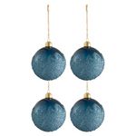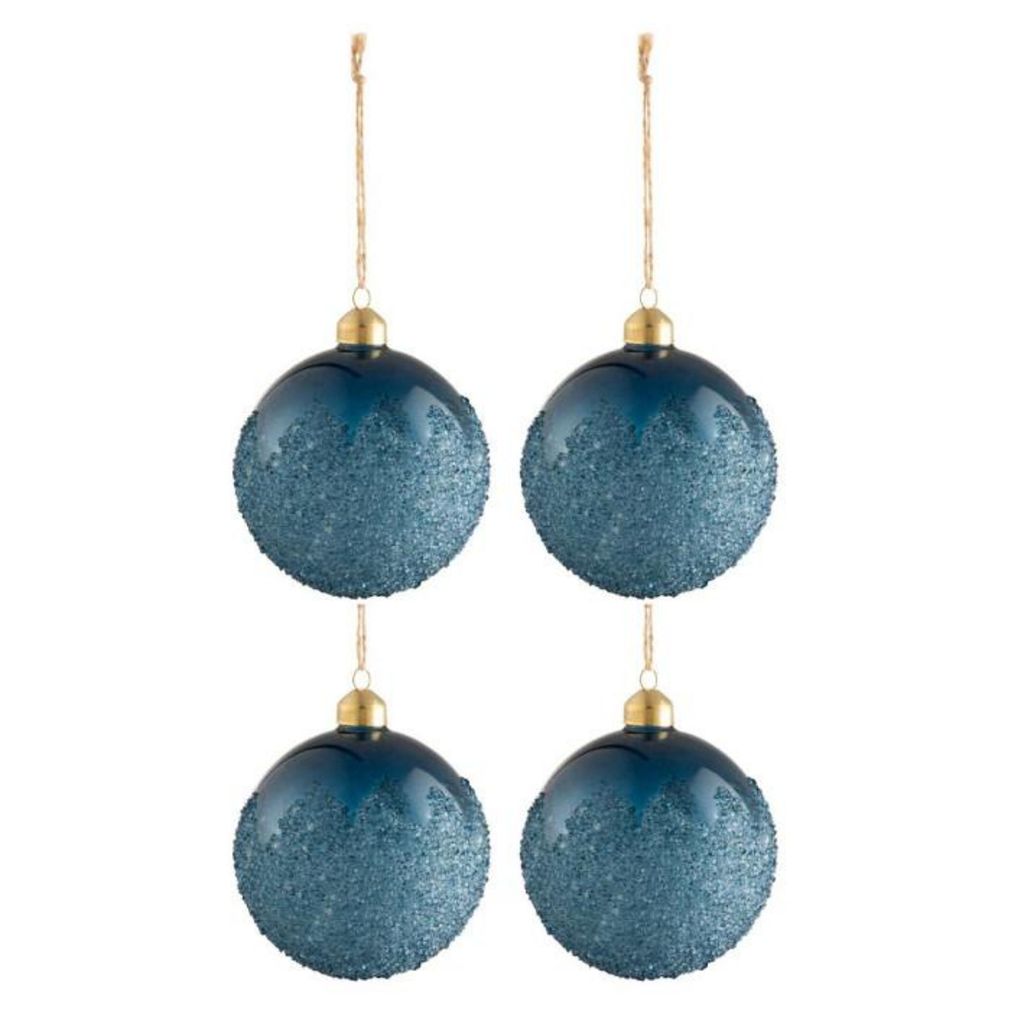 Lot de 4 Boules de Noël Givrées 10cm Bleu
