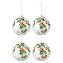 Lot de 4 Boules de Noël Houx 10cm Blanc & Vert