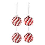 Lot de 4 Boules de Noël Lignes 8cm Rouge & Blanc