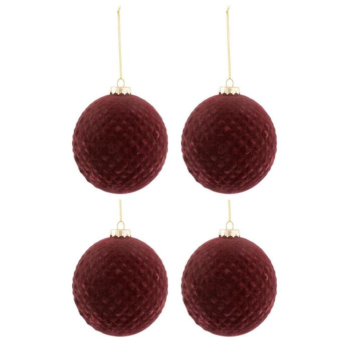 Lot de 4 Boules de Noël Motifs 10cm Bordeaux